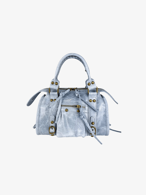 Clutch de piel con cierre de solapa con correa y hebilla. Cuenta con un asa de piel extraíble para llevarlo a modo crossbody.